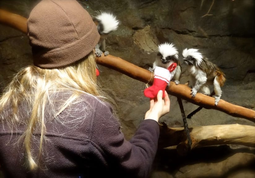 watch the video, notice how she exhibits natural species-specific behaviors – climbing, reaching, using her prehensile tail as an additional arm. What other behaviors do you notice?
